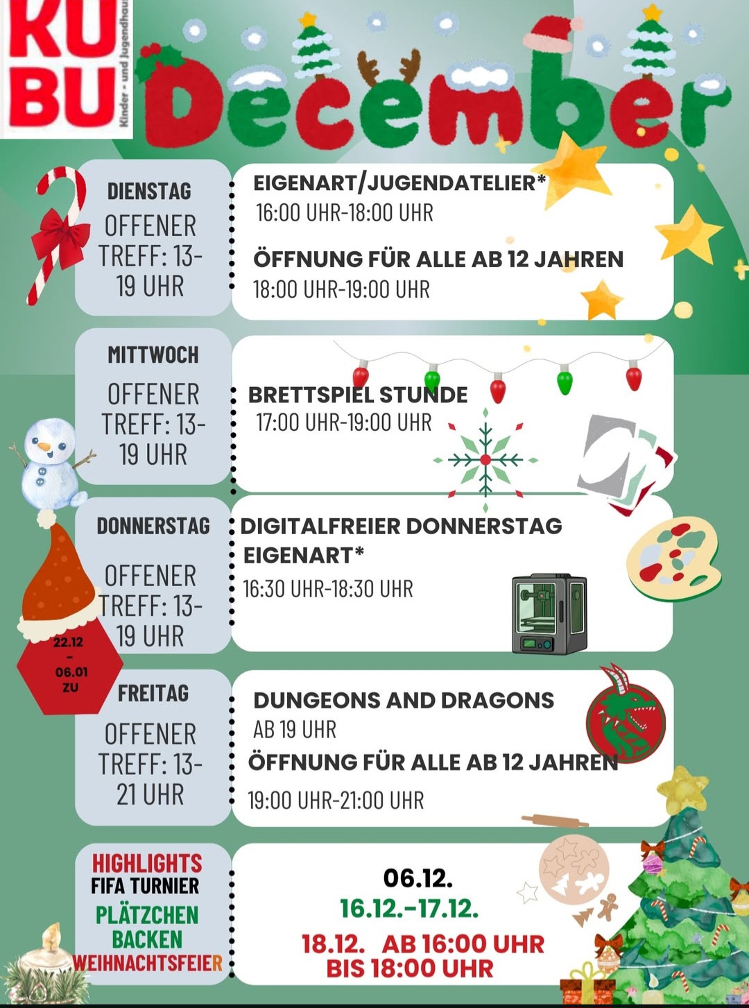 Wir öffnen Dienstags ab 18:00 Uhr und Freitags ab 19:00 Uhr exklusiv für Jugendliche ab 12 Jahren.